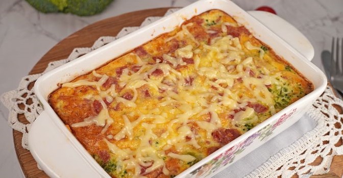 Для приготування цієї запіканки знадобляться дуже прості інгредієнти. Страва виходить апетитною на вигляд та смачною. Запіканка-омлет чудово смакує на сніданок. Вона ситна й дуже ароматна.