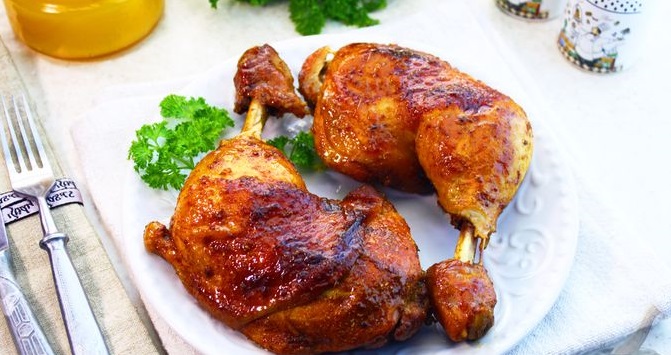 Потім курячі стегна відправляємо в рукав та поливаємо рештою соусу. Ставимо в духовку й запікаємо 55 хвилин при температурі 190 градусів. Готове м’ясо подаємо до столу. Смачного!