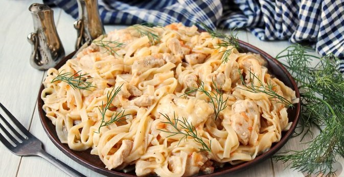Страва виходить дуже ситною та смачною. Локшина з куркою, помідорами та сиром готується просто й швидко. На смак страва виходить дуже ніжною. Обов’язково приготуйте її для своєї сім’ї.