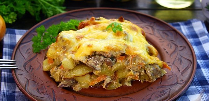 Картопляна запіканка з курячою печінкою та сиром