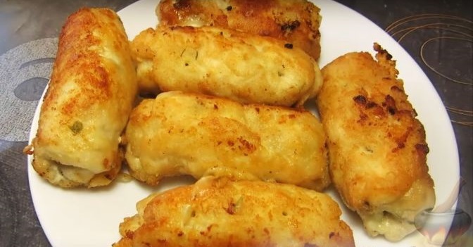 Потім рулетики обвалюємо в борошні та викладаємо на розігріту сковорідку. Смажимо їх до золотистої скоринки. Готові рулетики з сиром відразу подаємо до столу. Смачного!