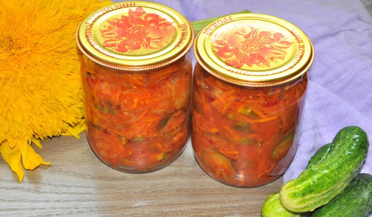 Салат з огірків має відмінний смак. Він дуже простий у приготуванні. Така консервація сподобається всім Вашим рідним. До столу салат можна подавати з будь-яким гарніром.