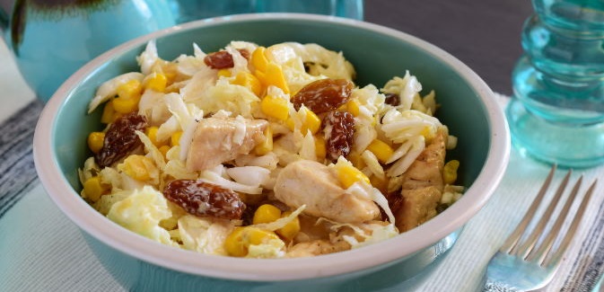 Салат з куркою, пекінською капустою та гірчично-медовою заправкою