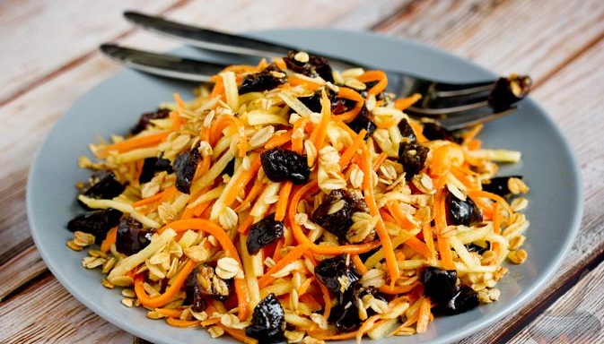 Морквяно-яблучний салат з вівсяними пластівцями та чорносливом