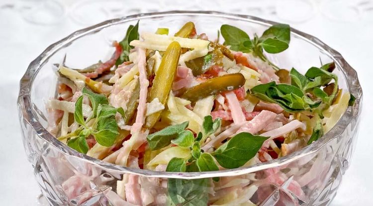 Цей салат підійде для любителів олів’є. Якщо Ви не полюбляєте варену ковбасу, то можна замінити її на копчену. Салат готується просто, швидко та виходить дуже смачним.