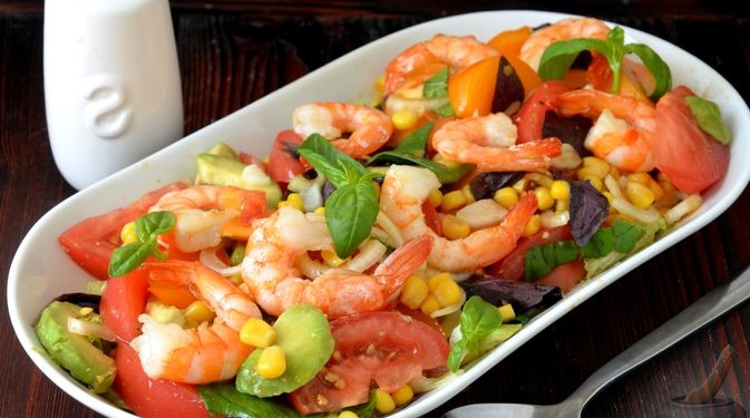 В салаті чудове поєднання інгредієнтів, тому він виходить дуже смачним. Страва проста у приготуванні. Салат з креветками, помідорами, авокадо та кукурудзою точно Вам сподобається.