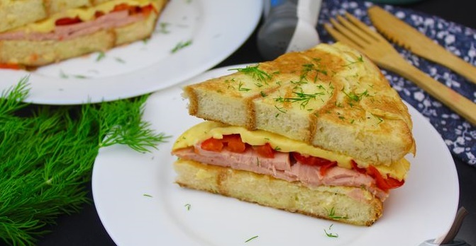 Такий омлет ідеально підійде на сніданок. Страва апетитна, смачна та ситна. Хлібний омлет з шинкою, помідорами та сиром точно Вам сподобається. Страва дуже проста та швидка у приготуванні.