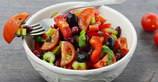 Салат з квасолею, перцем, помідорами, селера та маринованими огірками