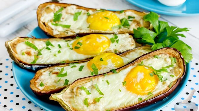 Потім солимо, перчимо та перемішуємо. Готовою начинкою фаршируємо баклажани. Вбиваємо туди по одному яйцю та ставимо в духовку. Запікаємо їх 25 хвилин при температурі 180 градусів. Готові баклажани посипаємо петрушкою та подаємо до столу. Смачного!