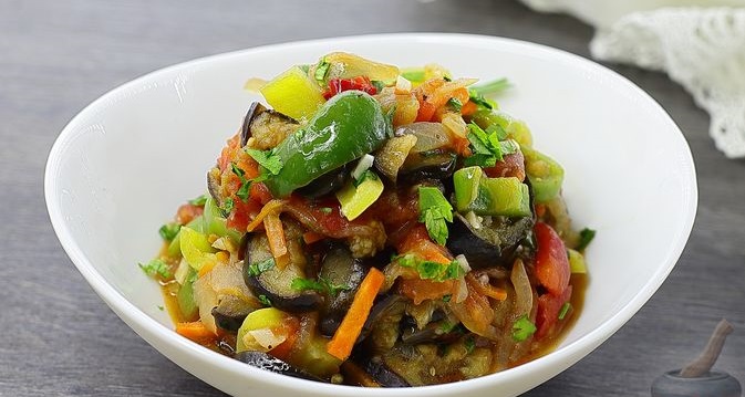 Овочеве рагу з баклажанами, солодким перцем та помідорами