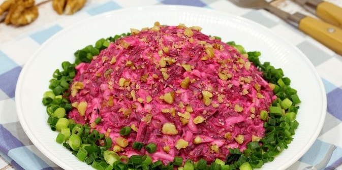 Салат з буряком, плавленим сиром та часником