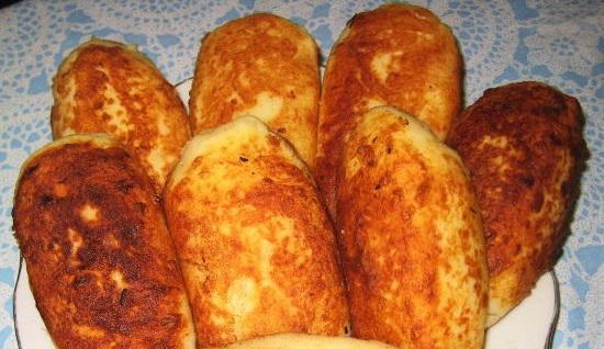 Потім всипаємо просіяне борошно. Замішуємо тісто. З нього формуємо пиріжки будь-якої форми. Сковорідку змащуємо великою кількістю олії. Викладаємо картопляні пиріжки та смажимо з двох боків до рум’яної скоринки.