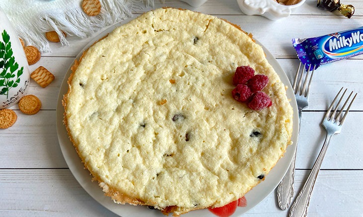 Основним інгредієнтом для приготування є кисломолочний сир. Його можна обирати будь-якої жирності. Запіканка готується на сковороді. Вона виходить ніжною на смак та ідеально смакує з будь-якими напоями.