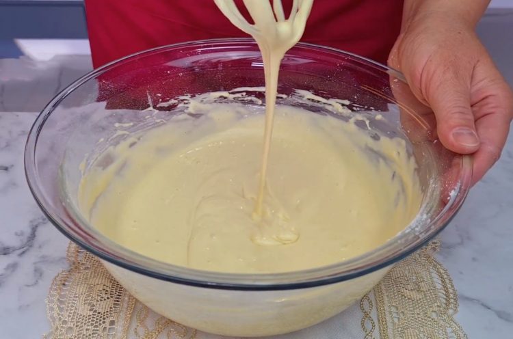 Висипаємо залишки борошна та доводимо тісто до стану сметани. Борошна може піти трохи більше або менше, тому що кефір, йогурт або сметана для тіста можуть відрізнятися за густотою. Але краще брати густий кисломолочний продукт, ніж більше чи менше борошна! Дивіться уважніше на тісто, на його структуру – для цього залишаємо вам фото.