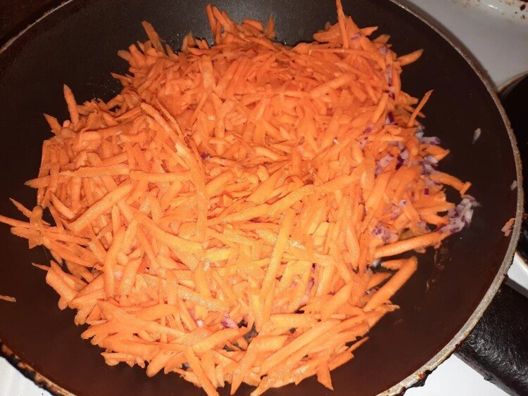 3. Розігріваємо сковороду з рослинною олією і обсмажуємо цибулю з морквою.