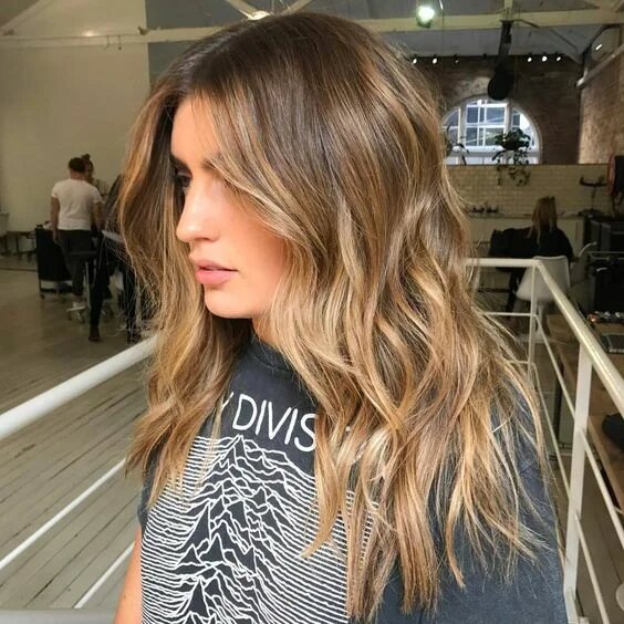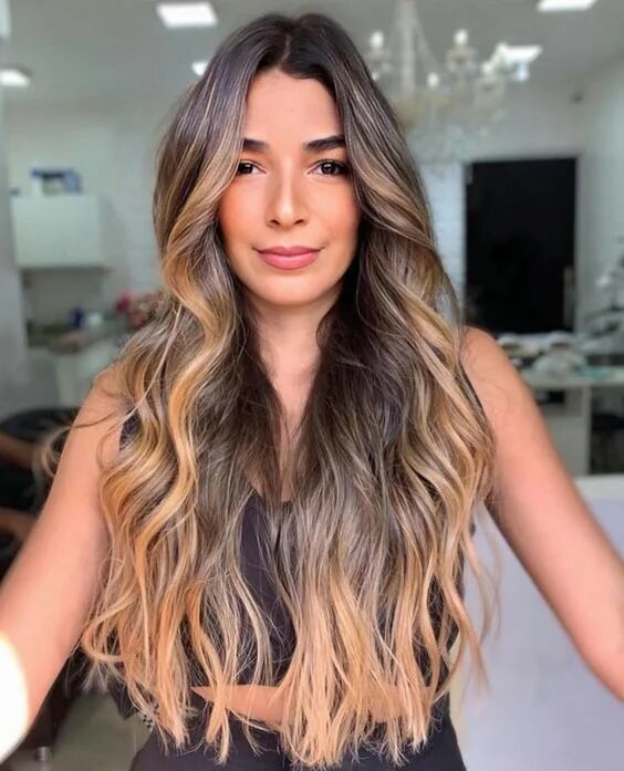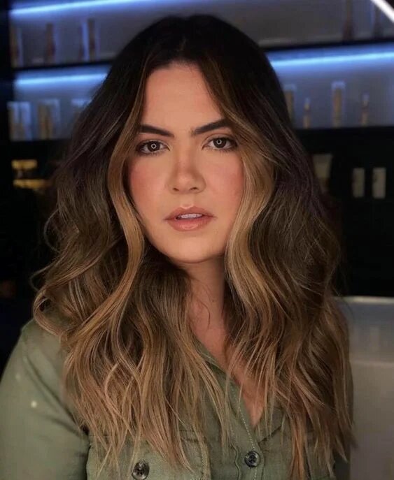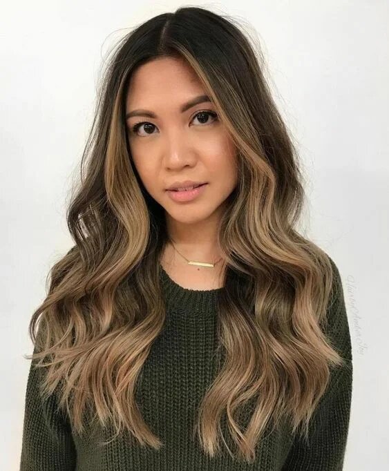 Брюнеткам, щоб стати світлішими, не обов’язково знебарвлювати волосся. Спробуйте балаяж в димчасто-золотистих відтінках, щоб надати образу м’якості та попелястої прохолоди.