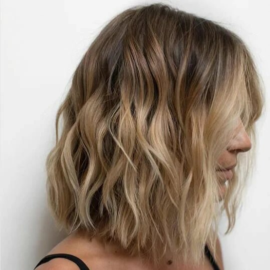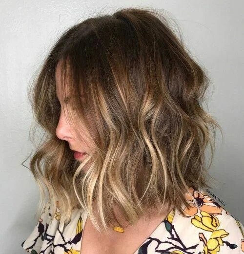 Карамельно-золотисті пасма надають волоссю блиску та лоску, колір виходить складним і неймовірно красивим. Такого ефекту можна досягти і на середній довжині.