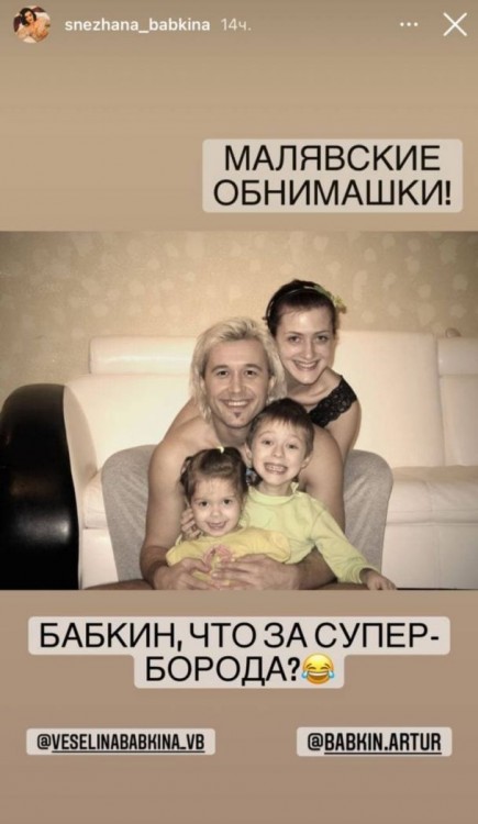 Також одного разу Сергій Бабкін кардинально змінив імідж, ставши блондином. Акторка опублікувала багато фото, які були зроблені у різні життєві періоди.