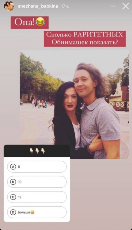 На кожному фото Сніжана Бабкіна позує в обіймах свого чоловіка. Як виявилось, колись в артиста було довге та злегка кучеряве волосся.