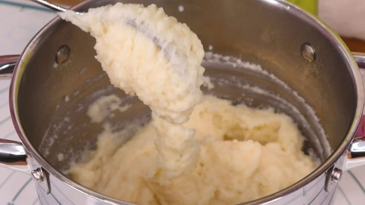 Тепер не зволікаємо, а одразу працюємо з гарячою манкою, просто одразу, як зняли її з плити, якщо чекатимете поки охолоне, сто відсотків нічого не вийде. Манка охолоне і не буде еластичною, стане густою.