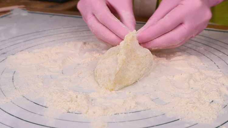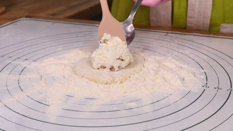 Спочатку потрібно підготувати начинку, тому що після приготування так званого тіста на це не буде часу! Ми використовуємо звичайний дрібнозернистий сир, він має саме ту структуру, що потрібно, досить липкий, не сухий і зернятка не великі. Якщо ваш сир зернистий, розімніть його виделкою або протріть через сито, якщо сухий, можна додати кілька столових ложок сметани.