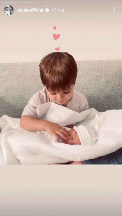 Зірка українського шоу-бізнесу вирішила показати обличчя новонародженої донечки, тому поділилась зворушливим кадром. Світлину Наталія Жижченко запостила в Instagram-stories. Солістка гурту “ONUKA” показала знайомство сина з маленькою сестричкою. 3-річний Сашко позував поруч з дівчинкою та гладив її по обличчю.