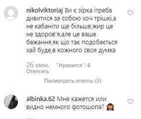 Бурхлива реакція передплатників зірки не змусила себе чекати. У коментарях користувачі розділилися на два табори: одні – дякували за сміливість і вміння визнавати власні недоліки, інші – нагадали Зарицькій, що вона все ж медійна особистість і їй необхідно стежити за фігурою.