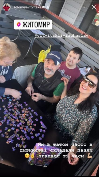 Перед камерою телеведуча постала усміхненою й задоволеною. Поруч з нею позував батько. Як виявилось, Соломія Вітвіцька чудово провела час. Разом з батьком вона складала пазли. Жінка поділилась, що в дитинстві це було її улюблене заняття. “Ми з татом часто в дитинстві складали пазли. Згадали ті часи”, – розповіла зірка ТСН.