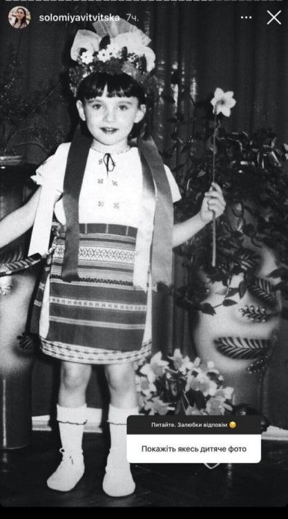На дитячій світлині маленька Соломія Вітвіцька позує у красивому українському народному вбранні. Вона одягнула спідницю з фартухом та вишиванку. На голові в дівчинки був український вінок зі стрічками та квітами. А ще Соломія Вітвіцька тримає в руці квітку.