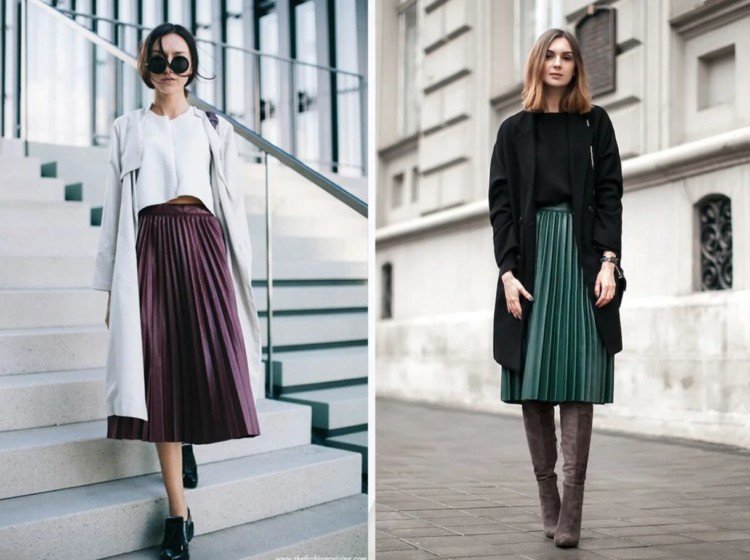 Перевага модних спідниць-плісе в першу чергу полягає в їх універсальності. Вони можуть бути використані в елегантних і витончених образах з туфлями на каблучку, блузками або футболками, надаючи силуету невагомості. Також можна застосувати для комбінації з в’язаними світшотами, об’ємними худі, грубуватими черевиками і кросівками.