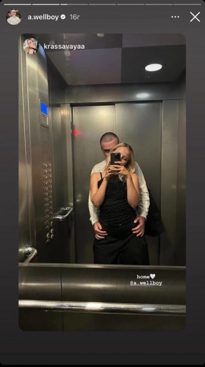 В Instagram-stories співак поділився романтичним кадром. Перед камерою він постав в обіймах коханої. Світлину пара зробила в ліфті. Обраницею співака стала київська стилістка Яна Савченко. Саме вона перша запостила кадр з Wellboy. Пізніше виконавець зробив репост її публікації.