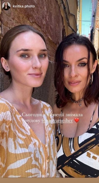 У своєму Instagram-акаунті Квітка розповіла про недавню фотосесію з Надією Мейхер, яку вони провели в Італії. “Сьогодні я знімала чудову Надію Мейхер у Венеції”, – підписала фотографію Аліна.