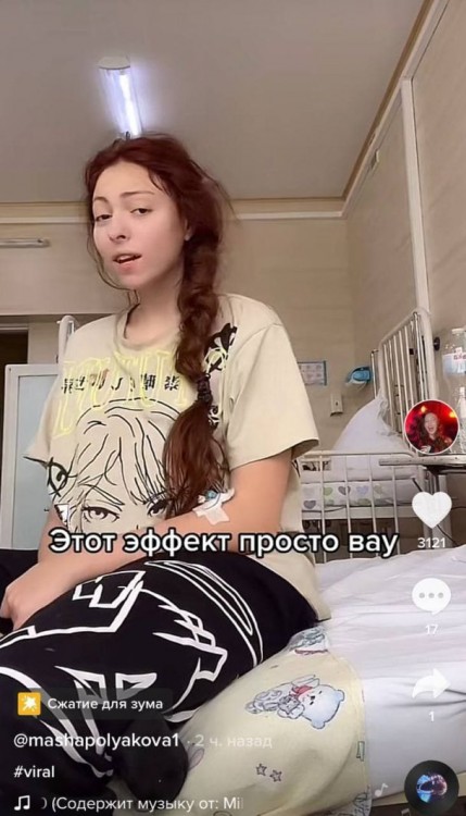 Дівчина із задоволенням записувала ролики у лікарняній палаті, продемонструвавши руку, на якій видніється катетер. Фани відразу почали засипати запитаннями доньку Олі Полякової. Вони цікавляться, чому саме дівчина опинилась в лікарні.