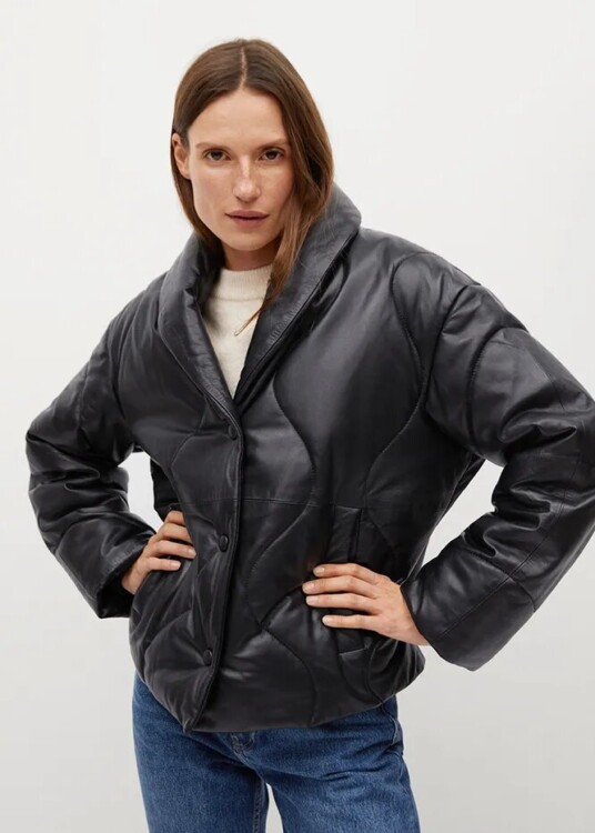 Дуже цікаво виглядають стьобані куртки, виконані з натуральної або штучної шкіри. Гладкий, прохолодний матеріал робить образ візуально більш зухвалим, а мереживна стібка пом’якшує грубуватий ефект і додає затишку.