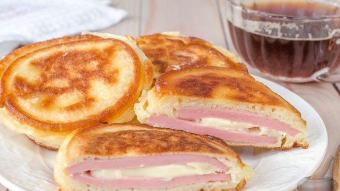 Оладки з ковбасою та сиром