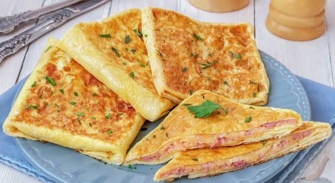 Яєчні конвертики з сиром та шинкою