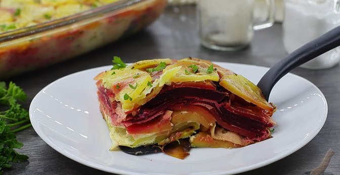 Якщо хочете приготувати овочеву запіканку, то збережіть цей рецепт. Страва дуже проста та смачна. Картопляна запіканка з буряком надзвичайно бюджетна. Вона має апетитний вигляд та ніжний смак.