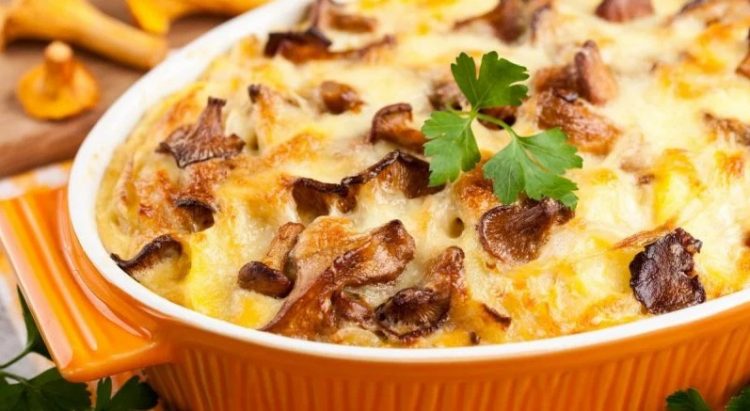 Запіканка з грибів виходить дуже ситною та смачною. Вона готується швидко й складається з простих інгредієнтів. До столу грибну запіканку подають в гарячому вигляді.