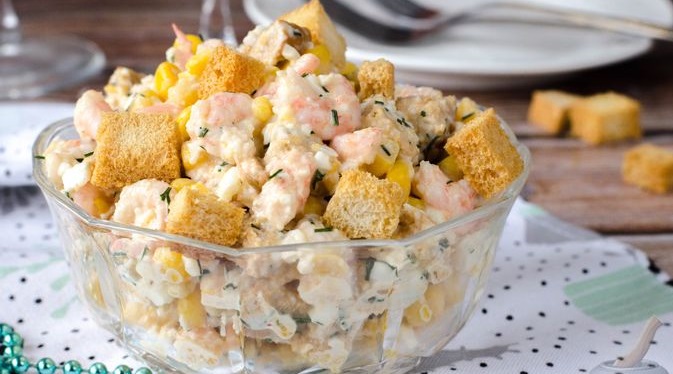 Для приготування салату знадобиться небагато інгредієнтів. Страва виходить дуже апетитною та має ніжний смак. Салат з креветками точно Вам сподобається.