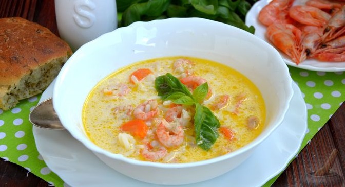 Таким супом можна пригощати гостей, адже він виходить дуже смачним та ситним. Страва проста у приготуванні. Суп з креветками дуже ароматний, ніжний на смак й апетитний.