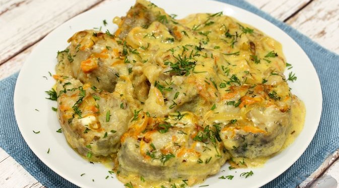 Таку гарячу страву можна подавати до святкового столу. Тушкована риба в томатно-гірчичному соусі надзвичайно смачна, ароматна та проста у приготуванні. Вона має апетитний вигляд та дуже ситна.