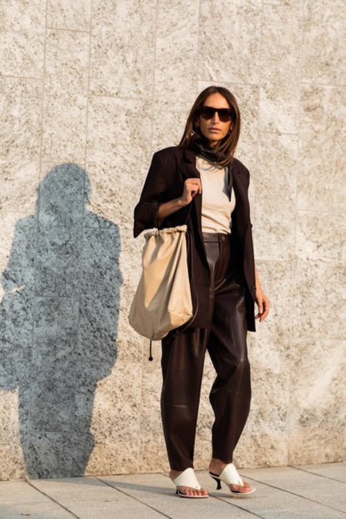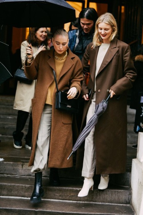 Для тих, хто не може уявити свій гардероб без чорного кольору, у дизайнерів є хороші новини – всі відтінки коричневого можуть стати чудовою альтернативою, одночасно стриманою і не такою передбачуваною. Особливе задоволення – грати з відтінками у цій палітрі, поєднуючи шоколад з паленою карамеллю, а світліший ірис з горіховим тоном. Приклад показують зірки стрітстайлу.