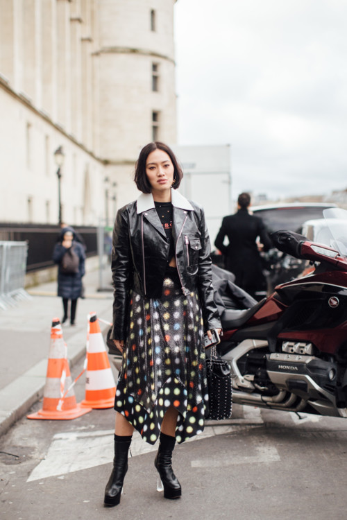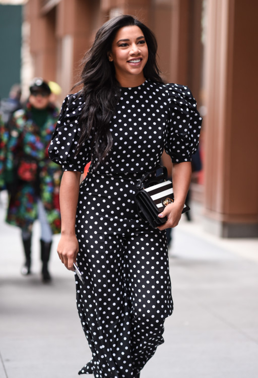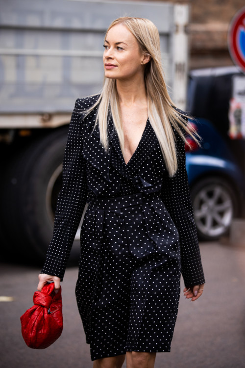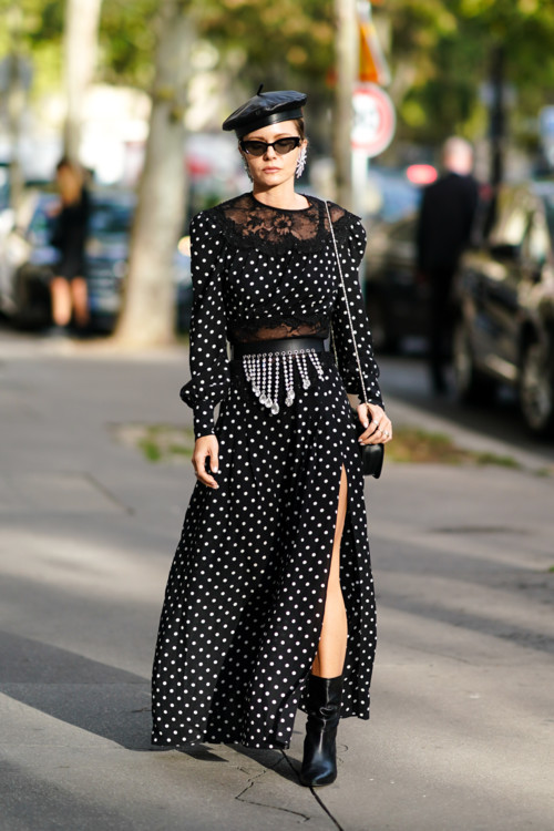Минулого тижня ми показали як streetstyle-активістки носять квітковий принт цієї весни, зараз же настав час наступного весняного візерунка – горохового орнаменту.