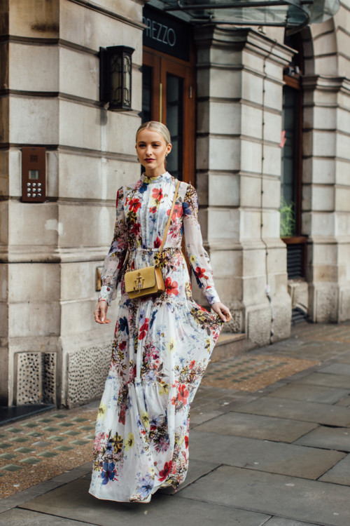 Ми зібрали найефектніші квіткові наряди дівчат на вулицях головних столиць моди – від летючих суконь, прикрашених польовими візерунками до брючних костюмів, розписаних великими бутонами троянд і пальт, декорованих флористичною вишивкою.