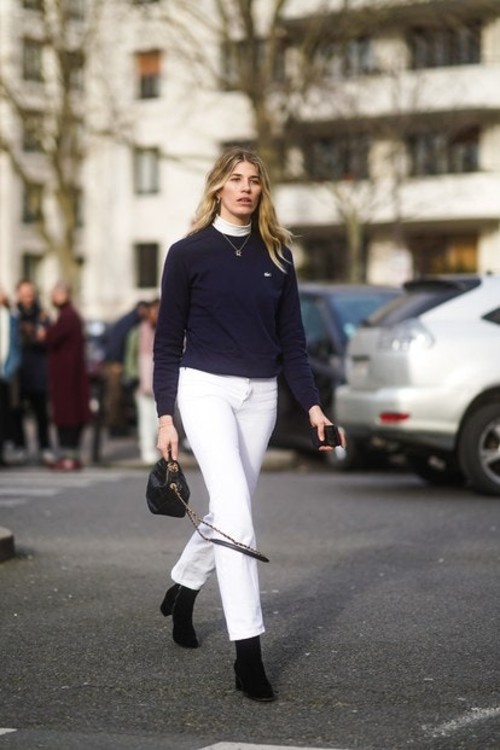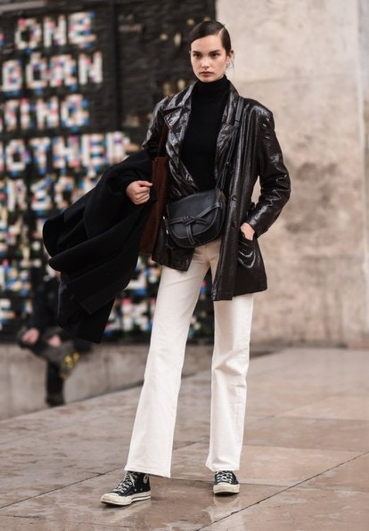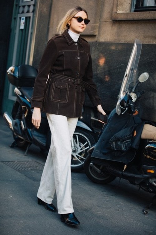 Улюблений денім цієї весни забарвлюється в максимально світлі відтінки, а справжнім хітом у гостей модних показів стали класичні білі джинси. Їхні фото доводять, що ця модель однаково добре виглядає і зі строгими жакетами, і з жокейськими чоботами, і з кокетливими беретами, і з величезними дублянками в дусі 1980-х років.