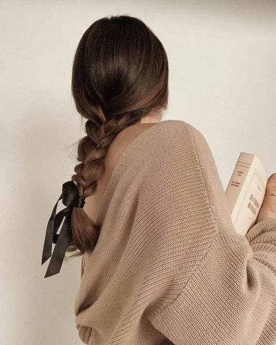 Коса і стрічка – кращі друзі для створення милого ніжного образу. Така зачіска чудово виглядає на будь-якій довжині волосся. Щоб стрічка краще трималася – використовуйте під нею тонку гумку-невидимку.
