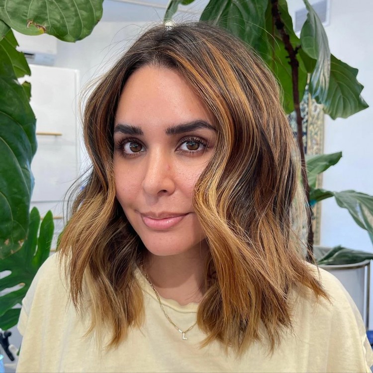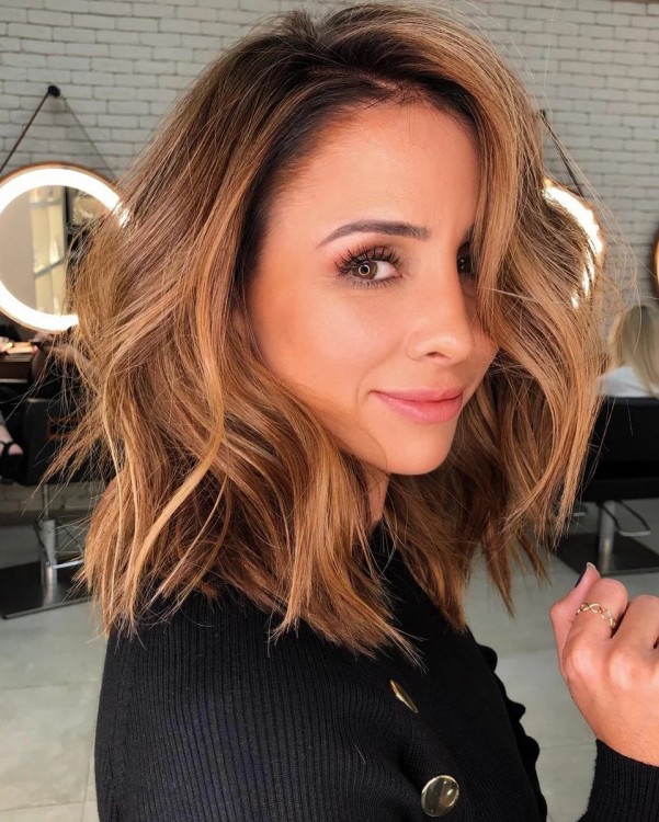 Техніка фарбування волосся baby lights для стрижки коб обрана не випадково. В тренді природність і натуральність. Імітація волосся, вигорілого під палючими променями літнього сонця, дуже вдало відповідає модному напрямку. Найбільш ефектно виглядає поєднання маси волосся темного каштанового кольору з рудуватим пасмами. Образ виходить розкішним і легким.