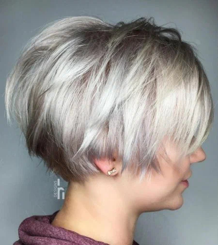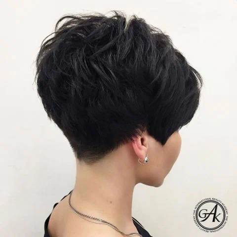 Піксі з об’ємною потилицею і піднесеною ефектною маківкою – чудовий варіант для модниць, які мріють про максимальний об’єм на своєму волоссі.