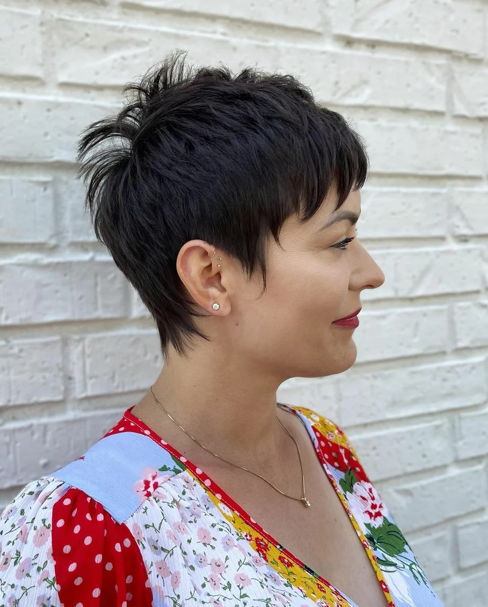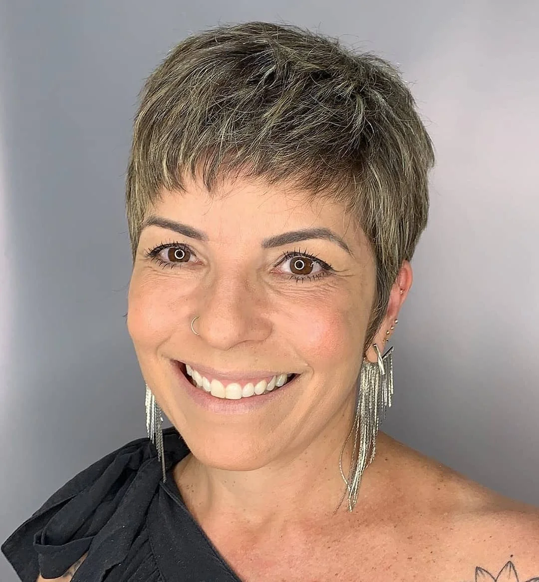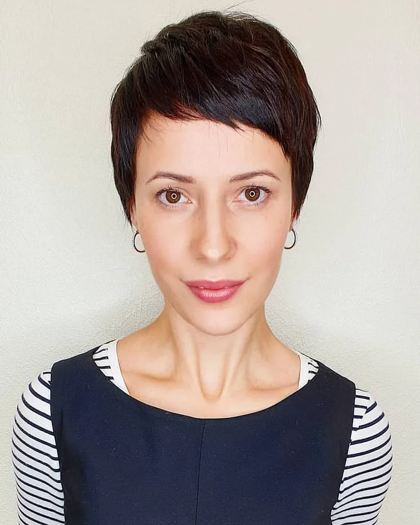 Коротка стрижка для жінок після 40 з коротким чубчиком