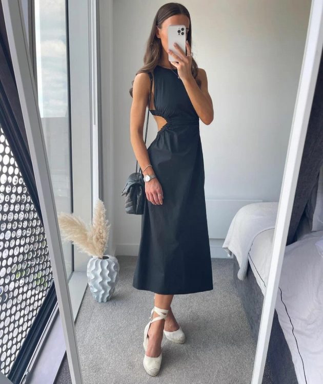 Для будь-якої ситуації буде доречно одягнути неяскраву літню сукню, яка дуже стильно виглядає із взуттям зі стрічками та маленькою сумочкою.
